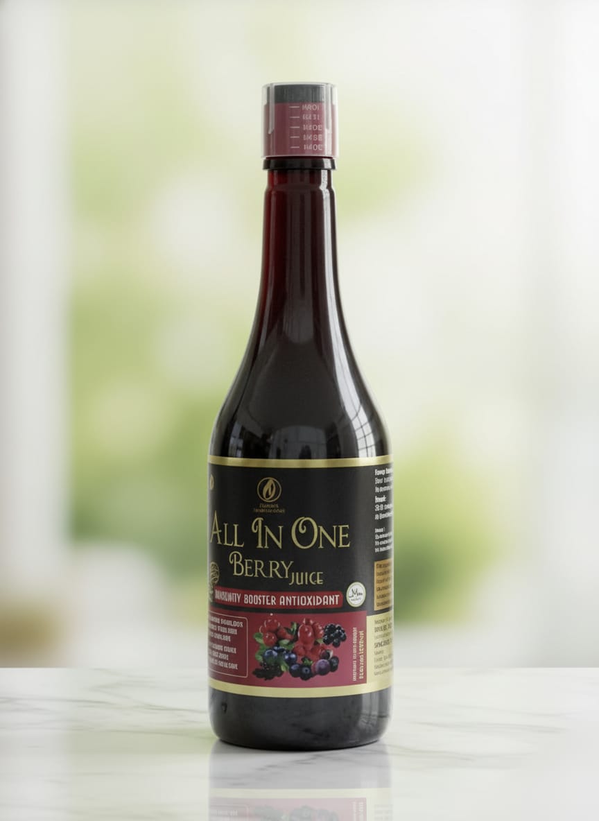 ???? All In One Berry Juice – উপকারিতা ???? ★ শরীরে প্রাকৃতিক অ্যান্টিঅক্সিডেন্ট সরবরাহ করে।রোগ প্রতিরোধ ক্ষমতা বৃদ্ধি করে।ত্বক উজ্জ্বল ও টানটান রাখে।লিভার ও কিডনির কার্যক্ষমতা উন্নত করে। হার্টের স্বাস্থ্য রক্ষা করে। হজম শক্তি ও মেটাবলিজম উন্নত করে। দেহের টক্সিন দূর করে ডিটক্সে সাহায্য করে। নিয়মিত সেবনে শক্তি, স্ট্যামিনা ও ফোকাস বাড়ায়।শরীরের অতিরিক্ত ওজন কমাই। ???? All In One Berry Juice – উপকরণসমূহ (Ingredients) এই জুসে থাকে বিভিন্ন প্রাকৃতিক বেরি ও ভেষজ উপাদান, যা শরীরের অ্যান্টিঅক্সিডেন্ট শক্তি বৃদ্ধি করে — ব্লুবেরি (Blueberry),ব্ল্যাককারেন্ট (Blackcurrant),অ্যাসাই বেরি (Acai Berry),গোজি বেরি (Goji Berry), ক্র্যানবেরি (Cranberry), আঙুরের রস (Grape Juice Extract),ডালিম (Pomegranate),এল্ডারবেরি (Elderberry), প্রাকৃতিক ভিটামিন C ও E,হালকা ভেষজ নির্যাস (Herbal Extracts) এছাড়াও আরো ৫২ টি বলেন মিশ্রণ রয়েছে ???? এই সব উপকরণ মিলে শরীরকে ভিতর থেকে শক্তি, পুষ্টি ও সুরক্ষা দেয়। ????All in One BERRY JUICE???? ​বিপণনকারী (Marketed by): Opulent International Private Limited (Firozpur, PB, India) ​উৎপাদনকারী (Mfg. by): Ayurveda Export (Abohar, Fazilka, Punjab, India) ​উৎপাদনের দেশ (Country of Origin): Made in India ???? খাওয়ার নিয়ম (Dosage/How to Consume) ​পণ্যের লেবেলে উল্লেখ করা আছে: ​পরিমাণ: 20-30 ml (২০-৩০ মিলি) ​সময়: দিনে দুইবার (twice a day) ​পদ্ধতি: খালি পেটে (on an empty stomach) ​সতর্কতা: গর্ভবতী বা স্তন্যদানকারী মহিলাদের এটি সেবনের পরামর্শ দেওয়া হয় না।